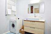 Czysta łazienka i biała umywalka w domu