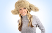 piękne, uśmiechnięte dziewczyny w kapelusz na białym tle
