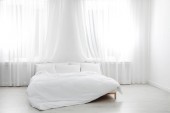 Minimalny wystrój wnętrz sypialni i czarne concrte tekstury tła ściany