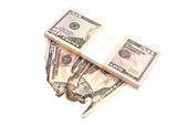 Amerykańskie banknoty dolarowe tworzące i mapa stanu Kolorado i białe tło