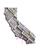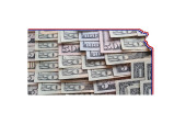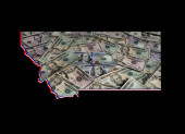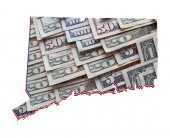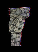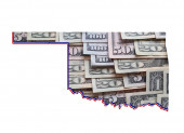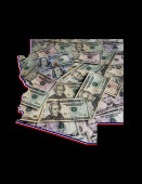 Amerykańskie banknoty dolarowe tworzące i mapa stanu Arizona i białe tło