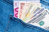 Zdjęcie "Banknoty wielowalutowe w tylnej kieszeni niebieskich dżinsów. Koncepcja przedsiębiorstwa" może być wykorzystywane do celów osobistych i komercyjnych zgodnie z warunkami zakupionej licencji Royalty-free. Obraz jest dostępny do pobrania w jakości wysokiej rozdzielczości do 5760x3840.