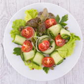 sałatka warzywna z ogórkiem, pomidorem i oliwką