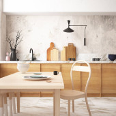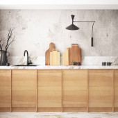 3d renderowanie drewnianej nowoczesnej kuchni wnętrza w stylu skandynawskim