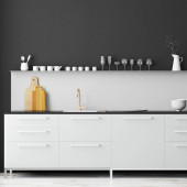3d renderowanie drewnianej nowoczesnej kuchni wnętrza w stylu skandynawskim