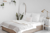 Zdjęcie "Wnętrze pięknej nowoczesnej sypialni z wiosennymi kwiatami" może być wykorzystywane do celów osobistych i komercyjnych zgodnie z warunkami zakupionej licencji Royalty-free. Obraz jest dostępny do pobrania w jakości wysokiej rozdzielczości do 5760x3840.