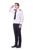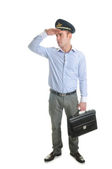 człowiek w linii lotniczych pilota jednolitego sylwetka pozdrawiając
