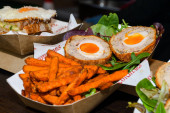 Kurczak, wieprzowina lub jagnięcina lub kanapka pita sabich - pita nadziewana smażonymi składnikami i jajkami na twardo Irakijscy Żydzi
