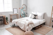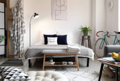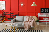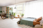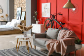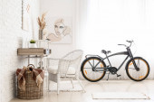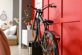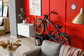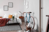 Wnętrze nowoczesnego pokoju z rowerem