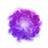 Dekoracyjna przekątna proszku eksplozji lub plusk fioletowy kolor na białym tle z miejsca kopiowania.