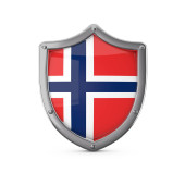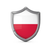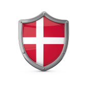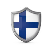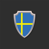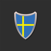 Koncepcja bezpieczeństwa Szwecji. Metalowy kształt tarczy z flagą narodową