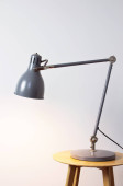 Zdjęcie "Dwie zabytkowe lampy kątowe, jedna wolnostojąca lampa podłogowa, a druga lampa stołowa na stołku, na szarej ścianie w pomieszczeniu" może być wykorzystywane do celów osobistych i komercyjnych zgodnie z warunkami zakupionej licencji Royalty-free. Obraz jest dostępny do pobrania w jakości wysokiej rozdzielczości do 5760x3840.