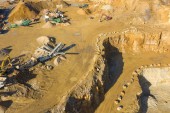 Zdjęcie "Widok z powietrza na przemysłową kopalnię odkrywkową. Otwarty kopalniany kamieniołom z dużą ilością maszyn w pracy. Widok drona z góry." może być wykorzystywane do celów osobistych i komercyjnych zgodnie z warunkami zakupionej licencji Royalty-free. Obraz jest dostępny do pobrania w jakości wysokiej rozdzielczości do 5760x3840.