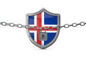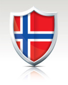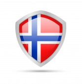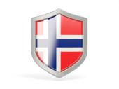 Koncepcja bezpieczeństwa Norwegii. Metalowy kształt tarczy z flagą narodową