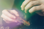 Zdjęcie "Kobieta przygotowująca i tocząca marihuanę. Kobieta obracająca marihuanę na białym tle. Koncepcja zażywania konopi. Zbliżenie marihuany tępym szlifierką. Tonowanie kolorów" może być wykorzystywane do celów osobistych i komercyjnych zgodnie z warunkami zakupionej licencji Royalty-free. Obraz jest dostępny do pobrania w jakości wysokiej rozdzielczości do 5760x3840.