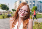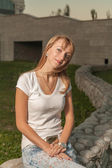atrakcyjny blond kobieta w dzień miasta parku