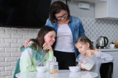 Zdjęcie "Mama i córka gotują muffinki w domowej kuchni. Samice i dzieci wlewają surowe ciasto do form silikonowych. Dzień Matki, rodzina, domowe pieczenie zdrowej żywności" może być wykorzystywane do celów osobistych i komercyjnych zgodnie z warunkami zakupionej licencji Royalty-free. Obraz jest dostępny do pobrania w jakości wysokiej rozdzielczości do 5760x3840.