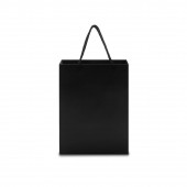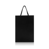 Czarna torba papierowa z uchwytami w widoku bocznym izolowana na białym tle ze ścieżką wycinania.