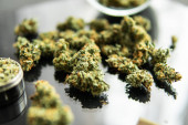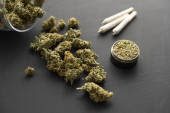 Zdjęcie "Młynek do ziół Świeża marihuana. Zamknij drzwi. Blunt i Zapalniczki. Pąki konopi w ręku na czarnym tle Tło dla miejsca Kopiuj. CBD i THC na pąkach konopi indyjskich." może być wykorzystywane do celów osobistych i komercyjnych zgodnie z warunkami zakupionej licencji Royalty-free. Obraz jest dostępny do pobrania w jakości wysokiej rozdzielczości do 5760x3840.