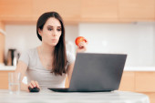 Zdjęcie "przemyślana kobieta trzyma łyżkę w pobliżu laptopa, miski i owoców w kuchni" może być wykorzystywane do celów osobistych i komercyjnych zgodnie z warunkami zakupionej licencji Royalty-free. Obraz jest dostępny do pobrania w jakości wysokiej rozdzielczości do 5760x3840.