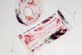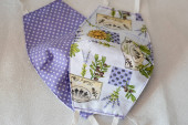 Selektywny nacisk na ręcznie robioną bawełnę odwracalne maski na twarz Widok z góry. Ochrona przed śliną, kaszlem, kurzem, zanieczyszczeniem, wirusem, bakteriami, COVID-19.