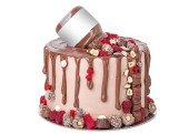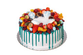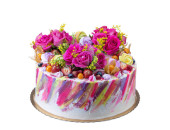 Egzotyczny tort urodzinowy z białych róż. Cukierki do egzekucji.