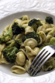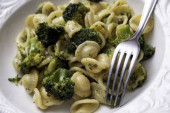 Dania z pysznych brokułów i makaronów bekonowych, kuchnia włoska