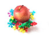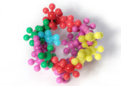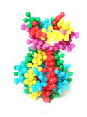 szczegóły konstruktora dziecięcego z tworzywa sztucznego są zestawione w formie mikroba cząsteczki wirusa