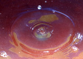 kropla brudnej wody spada i pęka na powierzchnię płynu chemicznego
