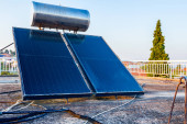 panele słoneczne na dachu domu, do ogrzewania wody