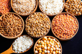 Zdjęcie "Miski różnych zbóż. Różne rodzaje naturalnych ziaren i zbóż. Różne rodzaje kaszy w miskach na czarnym tle. Zdrowe odżywianie" może być wykorzystywane do celów osobistych i komercyjnych zgodnie z warunkami zakupionej licencji Royalty-free. Obraz jest dostępny do pobrania w jakości wysokiej rozdzielczości do 5760x3840.
