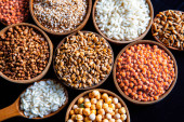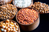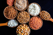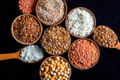 Zdjęcie "Miski różnych zbóż. Różne rodzaje naturalnych ziaren i zbóż. Różne rodzaje kaszy w miskach na czarnym tle. Zdrowe odżywianie" może być wykorzystywane do celów osobistych i komercyjnych zgodnie z warunkami zakupionej licencji Royalty-free. Obraz jest dostępny do pobrania w jakości wysokiej rozdzielczości do 5760x3840.