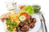 Mała ośmiornica duszona smażonymi ziemniakami. danie portugalskie