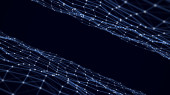 Fala cząsteczek. Streszczenie Niebieskiego Geometrycznego Tło. Wizualizacja dużych zbiorów. Technologia danych abstrakcyjna futurystyczna ilustracja. 3d renderowanie.