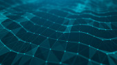 Zdjęcie "Fala cząsteczek. Streszczenie Niebieskiego Geometrycznego Tło. Wizualizacja dużych zbiorów. Technologia danych abstrakcyjna futurystyczna ilustracja. 3d renderowanie." może być wykorzystywane do celów osobistych i komercyjnych zgodnie z warunkami zakupionej licencji Royalty-free. Obraz jest dostępny do pobrania w jakości wysokiej rozdzielczości do 5760x3840.