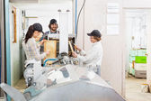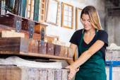 kobieta pszczelarz z skrzynkach ułożone o strukturze plastra miodu
