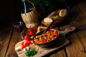 Zdjęcie "Fasola olbrzymia rustykalna ze świeżym sosem pomidorowym" może być wykorzystywane do celów osobistych i komercyjnych zgodnie z warunkami zakupionej licencji Royalty-free. Obraz jest dostępny do pobrania w jakości wysokiej rozdzielczości do 5760x3840.