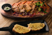Zdjęcie "Spatchcocked kurczaka al mattone grill z warzywami jako widok z góry na starej planszy" może być wykorzystywane do celów osobistych i komercyjnych zgodnie z warunkami zakupionej licencji Royalty-free. Obraz jest dostępny do pobrania w jakości wysokiej rozdzielczości do 5760x3840.