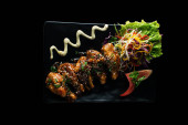 Zdjęcie "Spatchcocked kurczaka al mattone grill z warzywami jako widok z góry na starej planszy" może być wykorzystywane do celów osobistych i komercyjnych zgodnie z warunkami zakupionej licencji Royalty-free. Obraz jest dostępny do pobrania w jakości wysokiej rozdzielczości do 5760x3840.