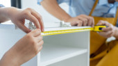 Zdjęcie "Mężczyzna ręka użyć środka taśma przygotować do montażu metalowego stojaka w magazynie lub przechowywaniu i półki do pudełek tekturowych produktów." może być wykorzystywane do celów osobistych i komercyjnych zgodnie z warunkami zakupionej licencji Royalty-free. Obraz jest dostępny do pobrania w jakości wysokiej rozdzielczości do 5760x3840.