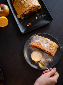 Zdjęcie "Kawałek tortu mrowiskowego z czekoladą na niebieskim talerzu nad wiejskim drewnianym stołem. Słodki pyszny deser." może być wykorzystywane do celów osobistych i komercyjnych zgodnie z warunkami zakupionej licencji Royalty-free. Obraz jest dostępny do pobrania w jakości wysokiej rozdzielczości do 5760x3840.