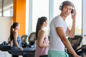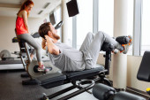 Sportowy trening młodych par z hantlami na siłowni
