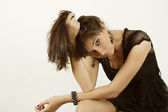 młoda kobieta w czarnej sukience