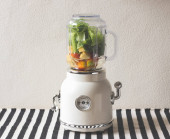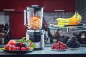 Nowoczesny blender i składniki dla zdrowego smoothie na stole kuchennym