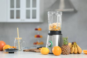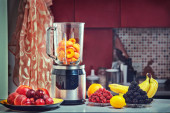 Zdjęcie "Nowoczesny blender i składniki dla zdrowego smoothie na stole kuchennym" może być wykorzystywane do celów osobistych i komercyjnych zgodnie z warunkami zakupionej licencji Royalty-free. Obraz jest dostępny do pobrania w jakości wysokiej rozdzielczości do 5760x3840.