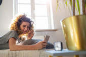 Zdjęcie "szczęśliwa samotna kobieta komunikująca się i słuchająca muzyki na biurku obok roślin i jasnego okna, pracująca w domu, pozostająca w domu." może być wykorzystywane do celów osobistych i komercyjnych zgodnie z warunkami zakupionej licencji Royalty-free. Obraz jest dostępny do pobrania w jakości wysokiej rozdzielczości do 5760x3840.