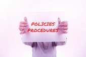 Konceptualne pismo ręczne pokazujące procedury polityki. Biznes photo showcasing Wpływ Główne decyzje i działania Zasady Wytyczne Drewniana deska drewno puste ramki stałe kolorowe paski ciąg.