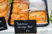 Wędzony łosoś brioche przystawkaŻywa stacja gotowania. Świeże jedzenie w formie bufetu Brunch Catering Posiłki Jedzenie Party Sharing Concept