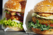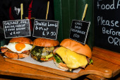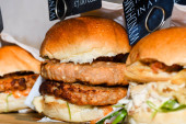 Zdjęcie "Świeże topienie burger gotowy do jedzenia podczas festiwalu fast food. Outdoor catering imprezy, brunch lub poza kolacją z fast food. Topiący się ser i złota bułka. Apetyczny hamburger domowej roboty" może być wykorzystywane do celów osobistych i komercyjnych zgodnie z warunkami zakupionej licencji Royalty-free. Obraz jest dostępny do pobrania w jakości wysokiej rozdzielczości do 5760x3840.