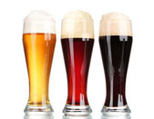 trzy zimnego piwa na białym tle biały + ścieżka przycinająca.